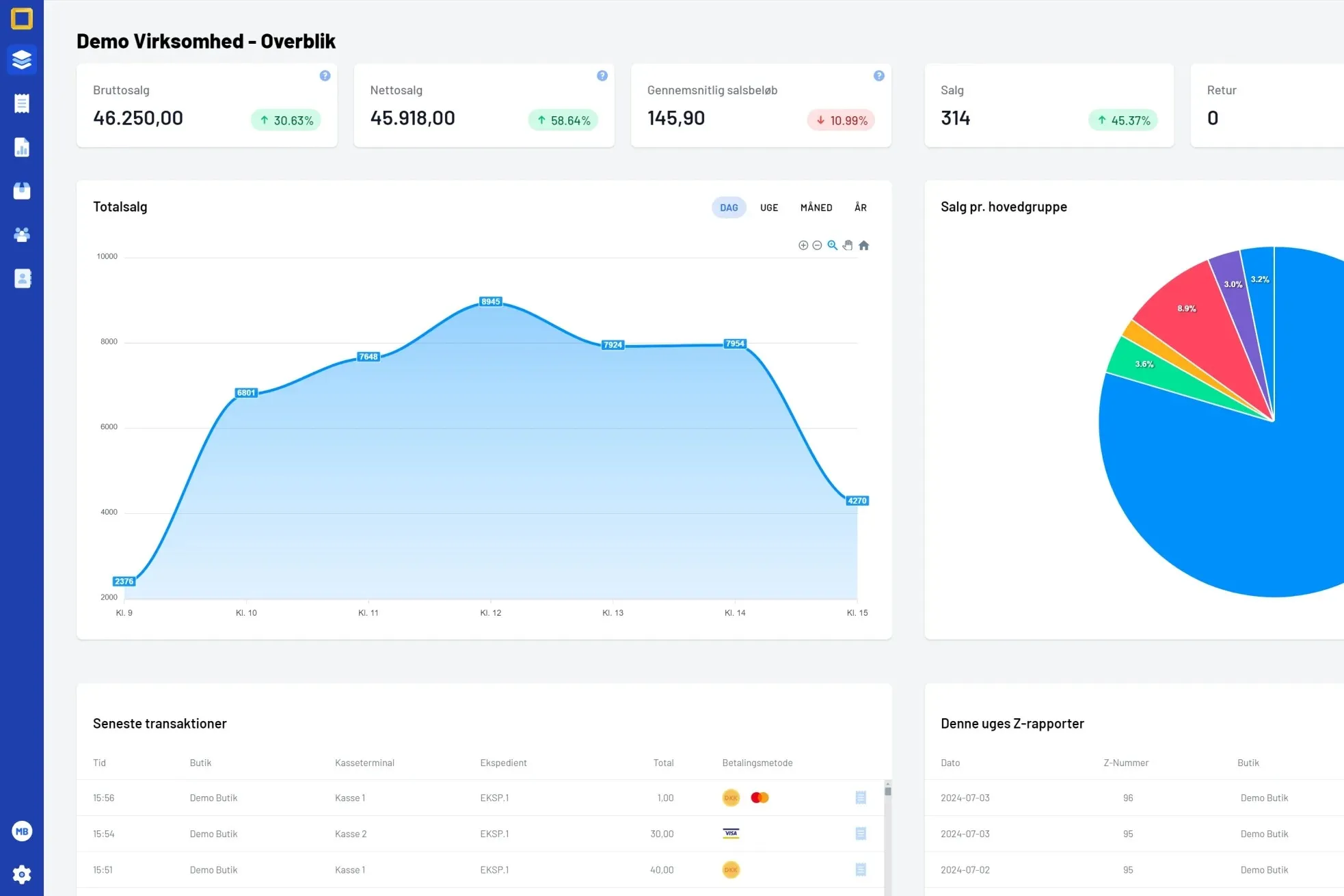 Systemet er webbaseret og samler data direkte fra dine kasseterminaler, så du altid har adgang til opdaterede tal, uanset hvor du befinder dig.
